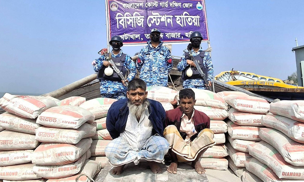 নোয়াখালীর দ্বীপ উপজেলা হাতিয়া থেকে মায়ানমারে পাচারের উদ্দেশ্যে বিপুল পরিমাণ সিমেন্টসহ দুই পাচারকারীকে আটক করেছে বাংলাদেশ কোস্ট গার্ড। শুক্রবার (২৬ ডিসেম্বর) ভোরে হাতিয়ার টাংকির খাল এলাকায় অভিযান চালিয়ে তাঁদের আটক করা হয়।