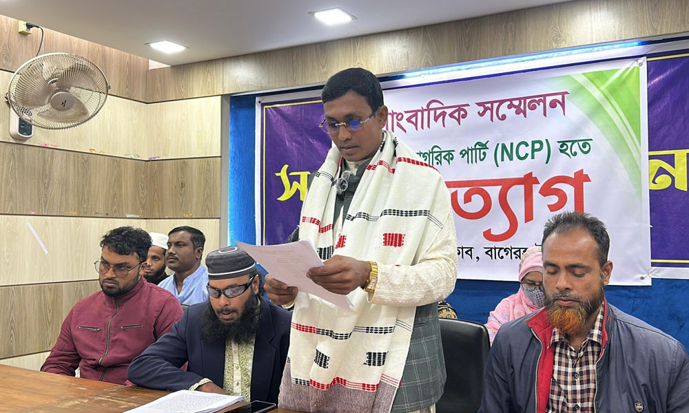 বাগেরহাটে জাতীয় নাগরিক পার্টির (এনসিপি) ১২ জন নেতা পদত্যাগ করেছেন। রবিবার (১১ জানুয়ারি) দুপুরে বাগেরহাট প্রেসক্লাবে সংবাদ সম্মেলনে এই পদত্যাগের ঘোষণা দেন সদর উপজেলা এনসিপির প্রধান সমন্বয়কারী মো. আলী হোসেন।