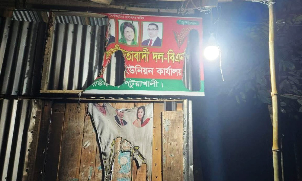 পটুয়াখালীর বাউফল উপজেলার চন্দ্রদ্বীপ ইউনিয়ন বিএনপির কার্যালয়ে পেট্রল ছিটিয়ে অগ্নিসংযোগের অভিযোগ উঠেছে। বুধবার (১৪ জানুয়ারি) রাত আনুমানিক ১১টার দিকে চন্দ্রদ্বীপ ইউনিয়নের চরমিয়াজান বাজার এলাকায় এ ঘটনা ঘটে। আগুনে কার্যালয়ের সাইনবোর্ড, ব্যানার ও ফেস্টুনসহ দরজা-জানালার একটি অংশ ক্ষতিগ্রস্ত হয়েছে।