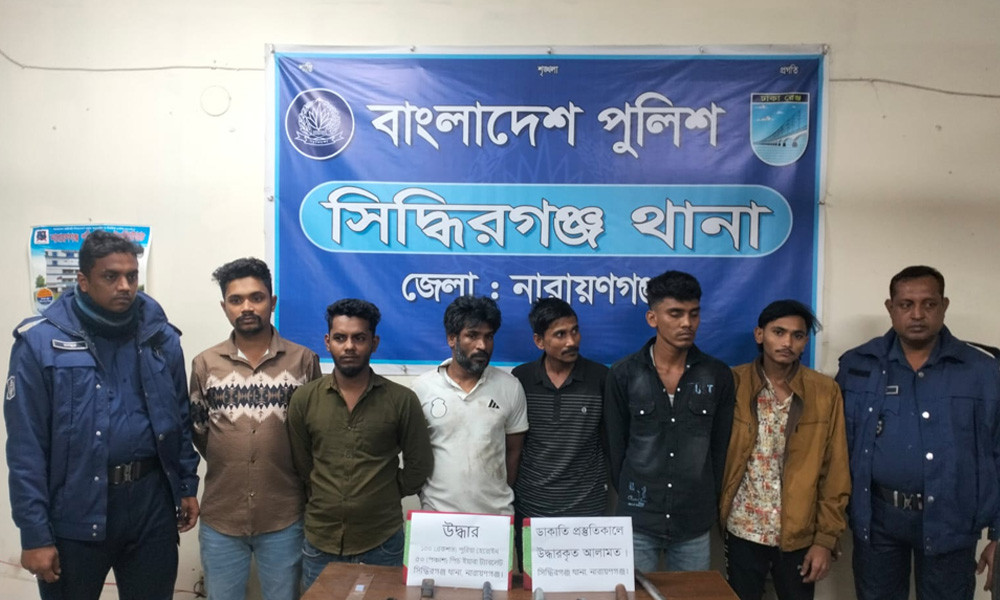 অভিযানকালে ডাকাতির প্রস্তুতিকালে আটজনকে আটক করা হয়। গ্রেপ্তাররা হলেন মো. মহিন (২৯), মো. সজিব (২৮), মো. রনি (৩০), মো. বাবু (৩০), মো. হাসান (২০), ইমন (২৫), শামীম (৩৩) ও জসিম (৩৮)। তাদের অধিকাংশই সিদ্ধিরগঞ্জের বিভিন্ন এলাকার বাসিন্দা বলে জানিয়েছে পুলিশ।