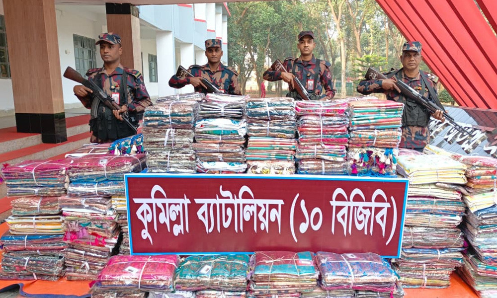 কুমিল্লা সীমান্ত এলাকায় অভিযান চালিয়ে বিপুল পরিমাণ ভারতীয় অবৈধ শাড়ি ও থ্রি-পিস উদ্ধার করেছে কুমিল্লা ব্যাটালিয়ন (১০ বিজিবি)। বৃহস্পতিবার (২২ জানুয়ারি) দুপুরে কুমিল্লা ব্যাটালিয়ন-এর অধিনায়ক লেফটেন্যান্ট কর্নেল মীর আলী এজাজ বিষয়টি নিশ্চিত করেন।