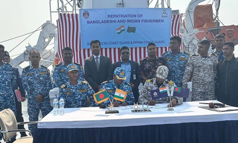 বিজ্ঞপ্তিতে আরও বলা হয়, বঙ্গোপসাগরে বাংলাদেশ ও ভারতের আন্তর্জাতিক সমুদ্রসীমা বরাবর বাংলাদেশ কোস্ট গার্ড ভারতীয় কোস্ট গার্ডের কাছ থেকে বাংলাদেশের মালিকানাধীন পাঁচটি ফিশিং বোটসহ ১২৮ জন বাংলাদেশি মৎস্যজীবী গ্রহণ করেছে। একই সময়ে ভারতের মালিকানাধীন দুটি ফিশিং বোটসহ ২৩ জন ভারতীয় মৎস্যজীবী ভারতীয় কোস্ট গার্ডের কাছে হস্তান্তর করা হয়।