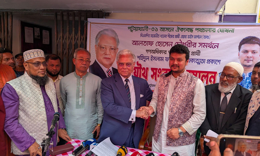 সকাল সাড়ে ১০টায় আলতাফ হোসেন চৌধুরীর বাসভবন ‘সুরাইয়া ভিলা’র সামনে আয়োজিত যৌথ সংবাদ সম্মেলনে এই সিদ্ধান্তের কথা জানান তিনি। শহিদুল ইসলাম ফাহিম বলেন, “পটুয়াখালী-১ আসনের সামগ্রিক উন্নয়ন ও রাজনৈতিক স্থিতিশীলতা বজায় রাখতে আমি ধানের শীষের প্রার্থী আলতাফ হোসেন চৌধুরীর প্রতি পূর্ণ সমর্থন জানাচ্ছি। নির্বাচনী বিধি অনুযায়ী ব্যালট পেপারে আমার প্রতীক থাকলেও পটুয়াখালীর মানুষের আশা-আকাঙ্ক্ষার প্রতিফলন ঘটাতে এবং শক্তিশালী জনপ্রতিনিধিত্ব নিশ্চিত করতে ধানের শীষের বিজয় ত্বরান্বিত করার সিদ্ধান্ত নিয়েছি।”
