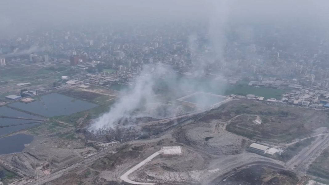 ঢাকা দক্ষিণ সিটি করপোরেশনের সবচেয়ে বড় ময়লার ভাগাড় মাতুয়াইল ল্যান্ডফিলে কয়েকদিন ধরে আগুন জ্বলছে। বিশাল বর্জ্যস্তূপ থেকে উঠছে ঘন বিষাক্ত ধোঁয়া ও দুর্গন্ধ, যা আশপাশের এলাকার মানুষের জীবনকে দুর্বিষহ করে তুলেছে। ফায়ার সার্ভিস আগুন নিয়ন্ত্রণে কাজ করলেও বিস্তীর্ণ এলাকায় ছড়িয়ে থাকা আগুন নেভাতে সময় লাগছে।