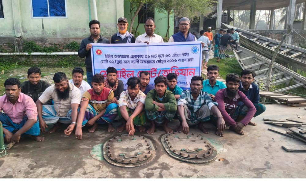 মেঘনায় অভিযানে কারেন্ট জালসহ আটক ১৪ জেলে