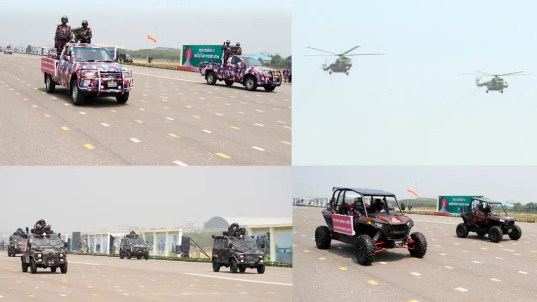 এছাড়া অল টেরেইন ভেহিকল ও প্রশিক্ষিত ডগ স্কোয়াডের কার্যক্রমও প্রদর্শিত হয়, যা বাহিনীর বহুমুখী সক্ষমতার প্রতিফলন হিসেবে দেখা হয়েছে।