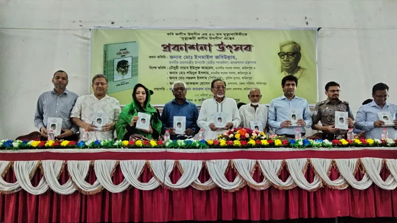 পরে বিকেলে ফরিদপুর শিশু একাডেমি মিলনায়তনে পল্লকবি জসীম উদ্দীনের ৫০তম মৃত্যুবার্ষিকী উপলক্ষে মফিজ ইমাম মিলনের লেখা ‘মৃত্যুঞ্জয়ী জসীম উদ্দীন’ গ্রন্থের মোড়ক উন্মোচন করা হয়। অনুষ্ঠানে অতিথিরা কবির জীবন ও কর্ম নিয়ে আলোচনা করেন এবং তার সাহিত্য পাঠের ওপর গুরুত্বারোপ করেন। শিশু একাডেমির খুদে শিল্পীরা কবিতা আবৃত্তি ও সংগীত পরিবেশন করে অনুষ্ঠানে অংশ নেয়।