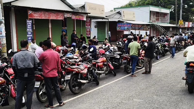 রাজধানী ঢাকাতেও পরিস্থিতি ভিন্ন নয়। ছুটির দিনেও বিভিন্ন ফিলিং স্টেশনে মোটরসাইকেল ও ব্যক্তিগত গাড়ির দীর্ঘ সারি দেখা গেছে। অনেক ক্ষেত্রে লাইনের শেষ অংশ প্রধান সড়কে গিয়ে পৌঁছেছে। সরবরাহ অনিয়মিত থাকায় দ্রুত তেল শেষ হয়ে যাচ্ছে পাম্পগুলোতে।