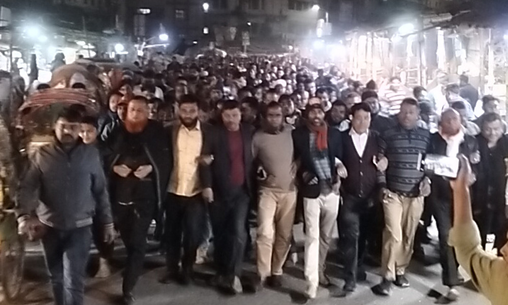 কারওয়ান বাজারে ব্যবসায়ীদের প্রতিবাদ, চাঁদাবাজদের বিচারের দাবি