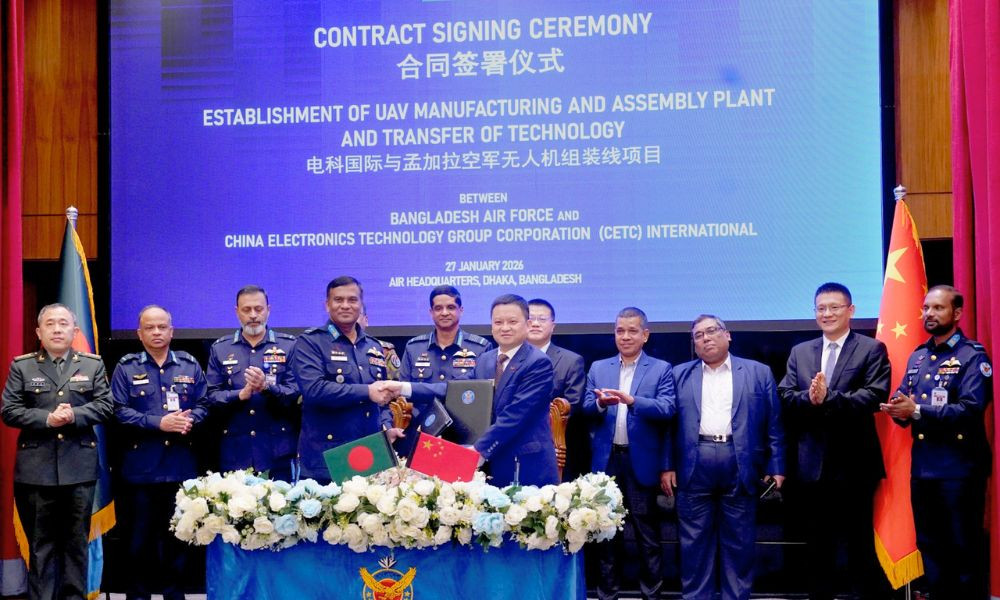 বাংলাদেশ বিমানবাহিনী ও চায়না ইলেকট্রনিক্স টেকনোলজি গ্রুপ করপোরেশন ইন্টারন্যাশনাল (সিইটিসি) সরকারি পর্যায়ে (জিটুজি) ‘ইউএভি ম্যানুফ্যাকচারিং ও অ্যাসেম্বলি প্ল্যান্ট’ স্থাপন এবং প্রযুক্তি হস্তান্তরের চুক্তি স্বাক্ষর করেছে।