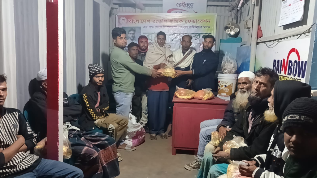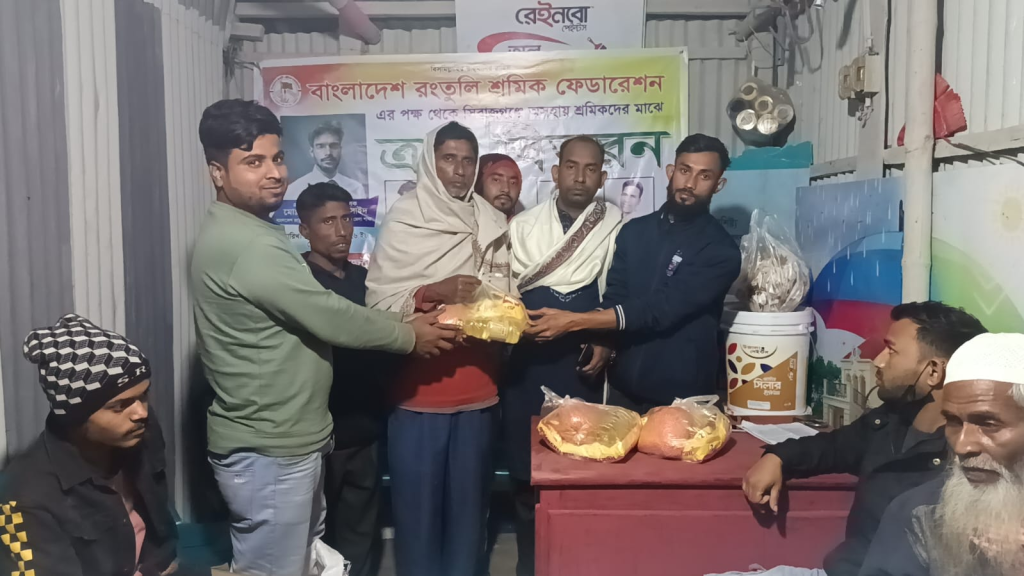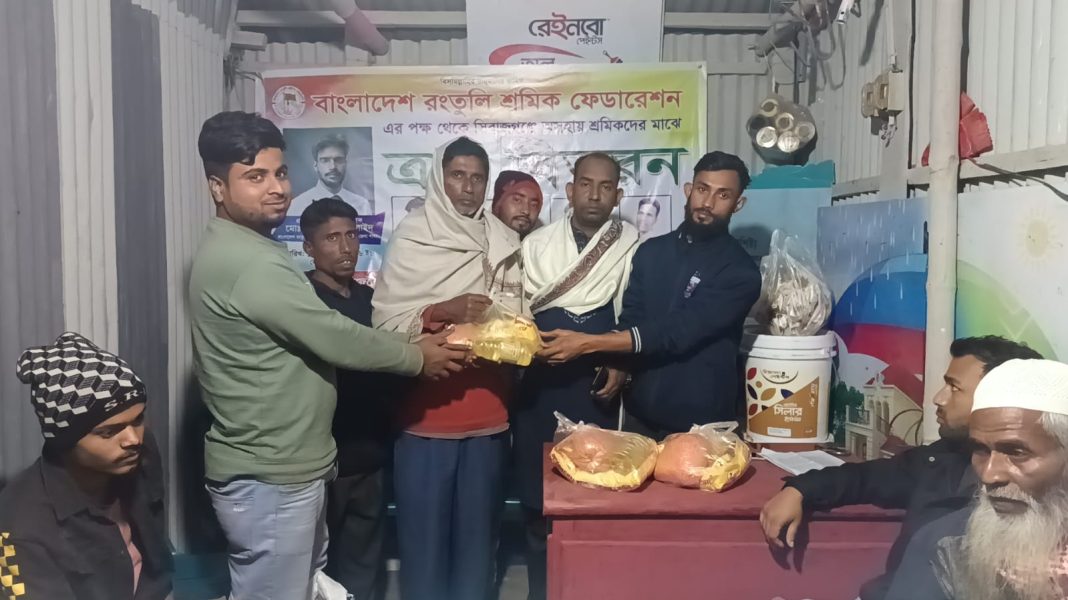 সিরাজগঞ্জে অসহায় শ্রমিকদের মাঝে রংতুলি শ্রমিক ফেডারেশনের খাদ্য সামগ্রী প্রদান