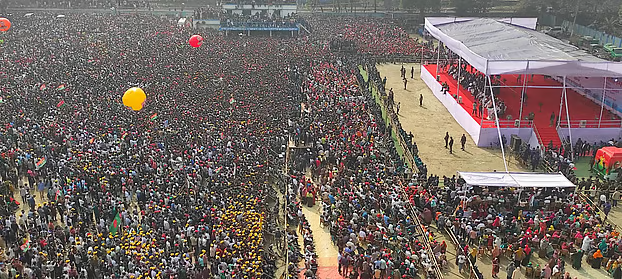 বিপুল মানুষের উপস্থিতিতে সমাবেশটি পরিণত হয় জনসমুদ্রে। ভোর থেকেই চট্টগ্রাম নগরীর বিভিন্ন এলাকা ছাড়াও রাঙামাটি, বান্দরবান, খাগড়াছড়ি ও কক্সবাজার জেলা থেকে নেতা-কর্মী, সমর্থক ও সাধারণ মানুষ পলোগ্রাউন্ড মাঠে জড়ো হতে থাকেন।