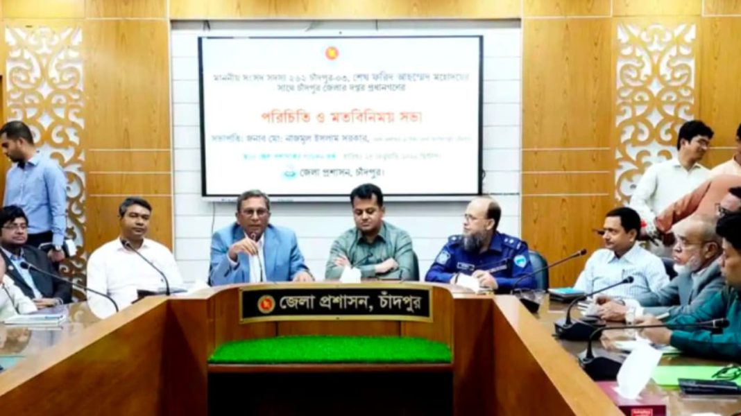 জেলা প্রশাসক মো. নাজমুল ইসলাম সরকারের সভাপতিত্বে সভায় আরও বক্তব্য রাখেন, পুলিশ সুপার মো. রবিউল হাসান।জেলা বিএনপির সাধারণ সম্পাদক অ্যাডভোকেট সলিম উল্যা সেলিম।চাঁদপুর প্রেসক্লাবের সভাপতি সোহেল রুশদী।
