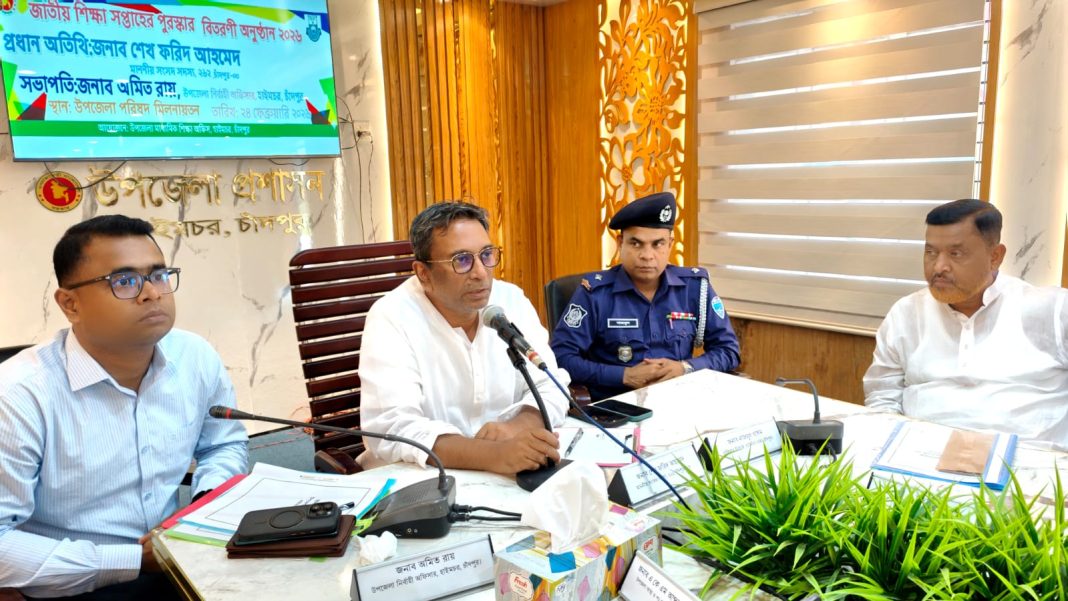 হাইমচর উপজেলায় মাসিক সমন্বয় ও আইন-শৃঙ্খলা সভা অনুষ্ঠিত হয়েছে। মঙ্গলবার (২৪ ফেব্রুয়ারি) সকাল সাড়ে ১১টায় উপজেলা পরিষদ হলরুমে আয়োজিত এই সভায় প্রধান অতিথি হিসেবে উপস্থিত ছিলেন চাঁদপুর-৩ আসনের নবনির্বাচিত সংসদ সদস্য শেখ ফরিদ আহমেদ মানিক। সভায় তিনি সরকারি কর্মকর্তাদের কাজের স্বচ্ছতা, মাদক নির্মূল এবং উন্নয়ন কাজে শতভাগ মান নিশ্চিত করার বিষয়ে কঠোর দিকনির্দেশনা প্রদান করেন।