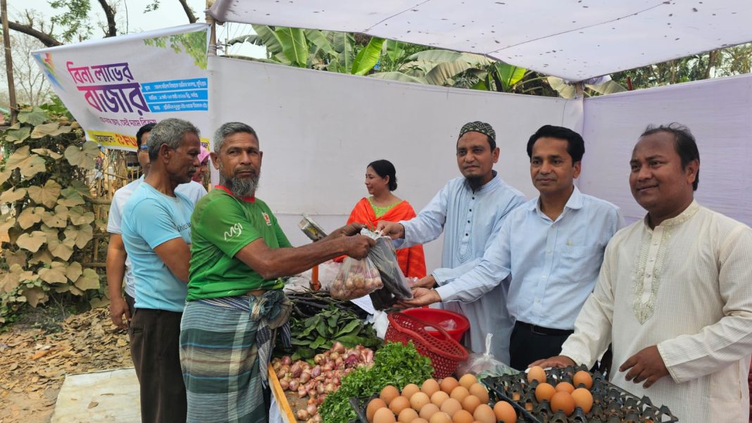 কুড়িগ্রামের খলিলগঞ্জ বাজারের পাশে জেলা মহিলা বিষয়ক অফিস সংলগ্ন রাস্তার পাশে বানানো হয়েছে ছোট্ট একটি ঘর। ঘরের ভিতর ১১ ফিট বাই ৩ ফিট একটি টেবিলের ওপর সাজানো ডিম , আলু , পিয়াজ, বেগুন, সিম, শশা, বরবটি, ধনেপাতাসহ আরো কয়েক প্রকার নিত্যপ্রয়োজনীয় পণ্য। দোকানটির ডানে অল্প কিছু দূরে পৌরবাজর আর বামে খলিলগঞ্জ বাজার থাকলেও এই বিনা লাভের দোকানে ভিড় করছে ক্রেতারা।