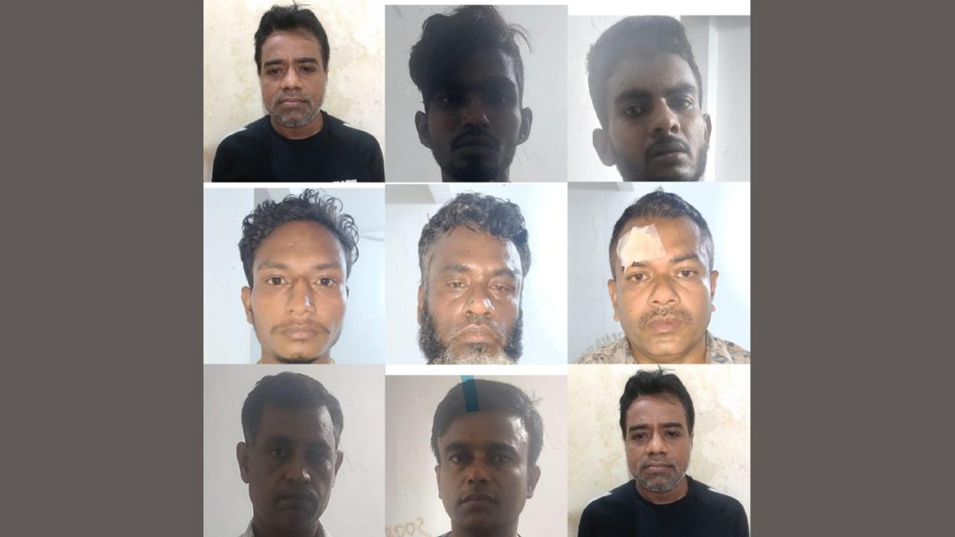 গ্রেপ্তার ব্যক্তিরা হলেন— মো. কামাল হোসেন (৪৪), মো. নুরে আলম (৪৫), মো. ওসমান (৩৯), মো. আব্দুর রহমান (৫৬), মো. বিল্লাল গড়ামী (৩০), মো. রনি (২৫), মো. শুভ ইসলাম কাউছার (২৪), বাপ্পী শিকদার (৩৫) ও মনিরুজ্জামান বাপ্পী ওরফে বাপ্পী শিকদার (৩২)।