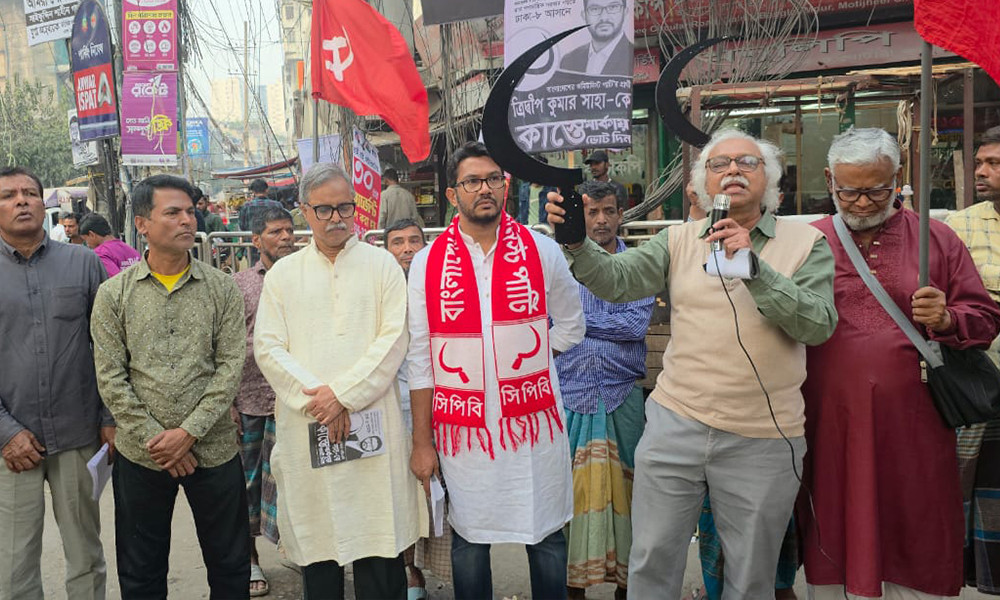 রবিবার (২৫ জানুয়ারি) রাজধানীর ফকিরাপুলে ঢাকা-৮ আসনে গণতান্ত্রিক যুক্তফ্রন্ট মনোনীত সিপিবির কাস্তে মার্কার প্রার্থী ত্রিদ্বীপ সাহার নির্বাচনী প্রচারে অংশ নিয়ে এসব কথা বলেন তিনি।