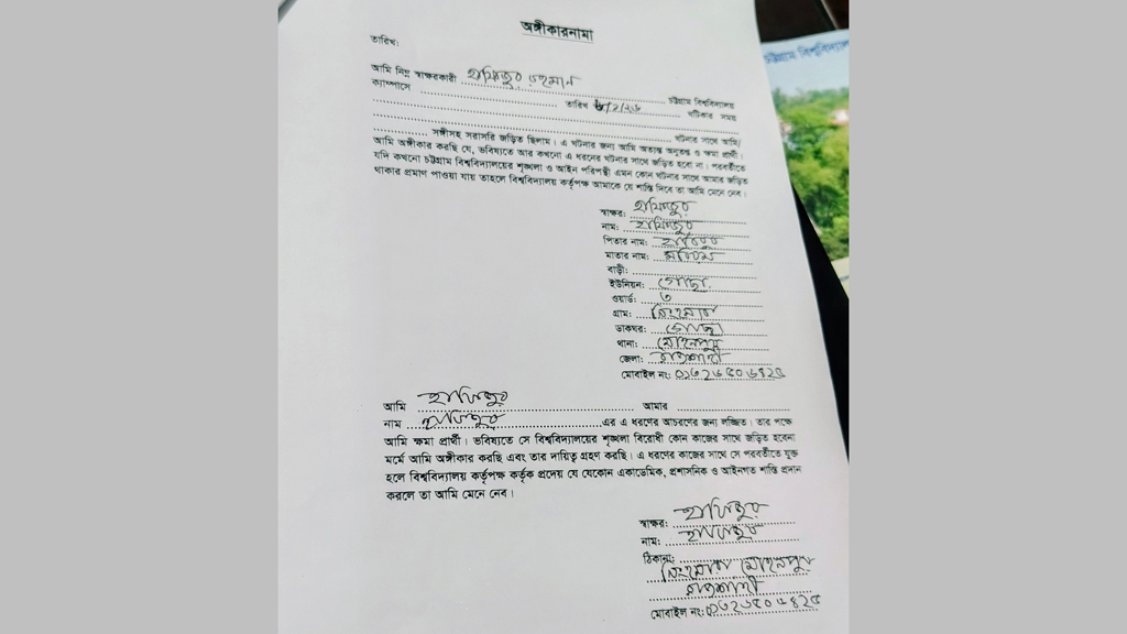 “নকলের বিষয়টি প্রথমে পরীক্ষকেরা শনাক্ত করেন। তারা ওএমআর শিট পরিবর্তন করেছিল। আমাদের জানানো হলে আমরা ঘটনাস্থলে গিয়ে তাদের প্রক্টর কার্যালয়ে নিয়ে আসি। তাদের কাছ থেকে মুচলেকা নেওয়া হয়েছে এবং পরীক্ষাটি বাতিল করা হয়েছে। মূলত ভবিষ্যতে যেন তারা আর এ ধরনের কাজ না করে—সে জন্যই আমরা তাদের সতর্ক করেছি। এ কারণে তাদের অভিভাবকদের ডাকা হয়নি।”