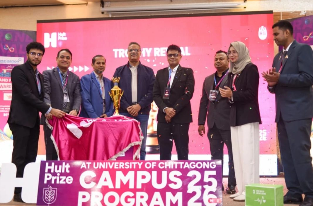 চট্টগ্রাম বিশ্ববিদ্যালয়ে হাল্ট প্রাইজ চট্টগ্রাম বিশ্ববিদ্যালয় (এইচপিসিইউ) ২০২৫–২৬ সেশনের ক্যাম্পাস প্রোগ্রামের চূড়ান্ত পর্ব অনুষ্ঠিত হয়েছে। টেকসই উন্নয়ন লক্ষ্যমাত্রা (এসডিজি) ১২, ১৩ ও ১৫-এর সঙ্গে সামঞ্জস্যপূর্ণ উদ্ভাবনী প্রকল্প উপস্থাপন করে চ্যাম্পিয়ন হিসেবে নির্বাচিত হয়েছে ‘টিম চতুষ্কোণ’।