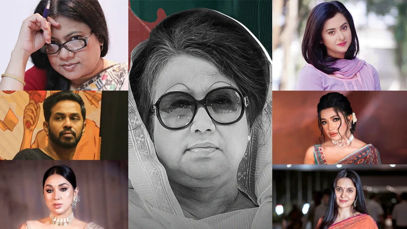 চিত্রনায়িকা নুসরাত ফারিয়া শোকবার্তায় লিখেছেন, ইন্নালিল্লাহি ওয়া ইন্না ইলাইহি রাজিউন। আল্লাহ তাকে ক্ষমা করুন এবং জান্নাতুল ফেরদৌস দান করুন। চিত্রনায়ক সিয়াম আহমেদ ও চিত্রনায়িকা পূজা চেরিও বেগম খালেদা জিয়ার ছবি প্রকাশ করে তার বিদেহী আত্মার শান্তি কামনা করেন।