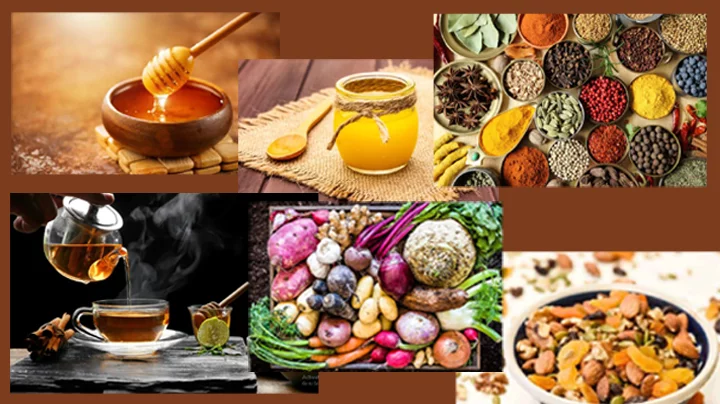 আদা, জিরা, দারুচিনি, গোলমরিচ, তিল ও হলুদ শীতে শরীরকে উষ্ণ রাখে। দারুচিনি মেটাবলিজম বাড়ায়, জিরা ও আদা দীর্ঘ সময় শরীরকে তাপ দেয়। গোলমরিচ ফ্লু থেকে রক্ষা করে, তিল শ্বাসযন্ত্রের রোগ প্রতিরোধে সহায়ক।