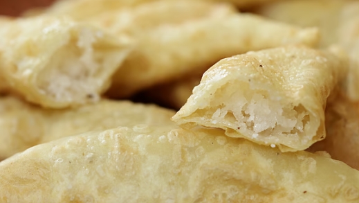 প্রণালি: নারকেল ও চিনি ছাড়া সব উপকরণ মিশিয়ে পানিতে মথে ঢেকে রাখুন। চিনি ও নারকেল মেশান। পাতলা রুটি বেলে নারকেল–চিনির পুর দিয়ে পুলি পিঠার মতো মুখ আটকে দিন। ডুবোতেল গরম করে দ্রুত ভেজে তুলুন।