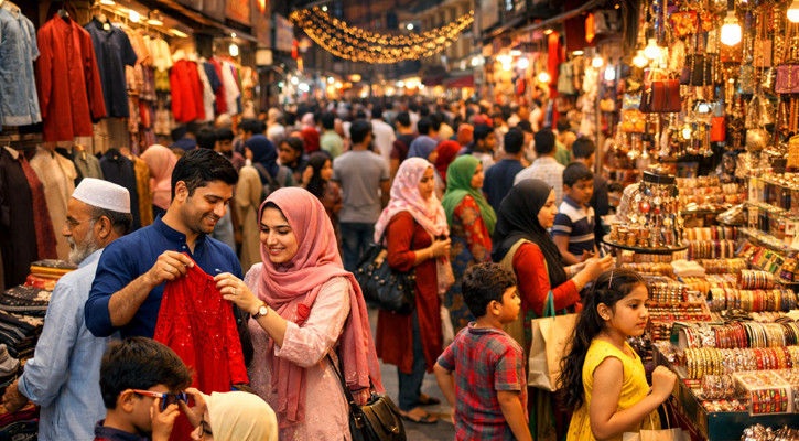 ঢাকার নিউ মার্কেট, বসুন্ধরা সিটি শপিং কমপ্লেক্স এবং চাঁদনি চক মার্কেটসহ প্রধান শপিং এলাকাগুলোতে ইফতারের পর থেকেই ভিড় বাড়ছে। দোকানগুলো আলোকসজ্জায় সাজানো। পরিবার নিয়ে অনেকে কেনাকাটায় বের হচ্ছেন। শিশুদের পোশাক, পুরুষদের পাঞ্জাবি ও নারীদের শাড়ি বেছে নিতে সময় নিচ্ছেন ক্রেতারা।