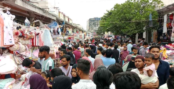 পবিত্র ঈদুল ফিতরকে সামনে রেখে রাজধানী ঢাকার অন্যতম ব্যস্ত বাণিজ্যিক এলাকা নিউমার্কেট, সায়েন্স ল্যাবরেটরি ও এলিফ্যান্ট রোডে ক্রেতাদের ভিড় বেড়েছে। ছুটির দিনে এসব এলাকায় মানুষের উপস্থিতি এতটাই বেশি ছিল যে পুরো এলাকা যেন এক বিশাল জনসমুদ্রে পরিণত হয়েছে।