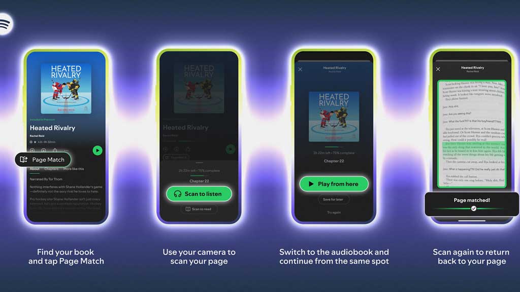 এই প্রক্রিয়াকে সহজ করতে স্পটিফাই চালু করছে ‘পেইজ ম্যাচ’ নামের একটি নতুন টুল। এর মাধ্যমে ব্যবহারকারীরা বইয়ের যেকোনো পৃষ্ঠা স্ক্যান করে সরাসরি সংশ্লিষ্ট অডিওবুক অংশে যেতে পারবেন। একই সঙ্গে অডিওবুক শোনার সময় বইয়ের কোন পৃষ্ঠায় সেই অংশটি রয়েছে, তাও দেখা যাবে।