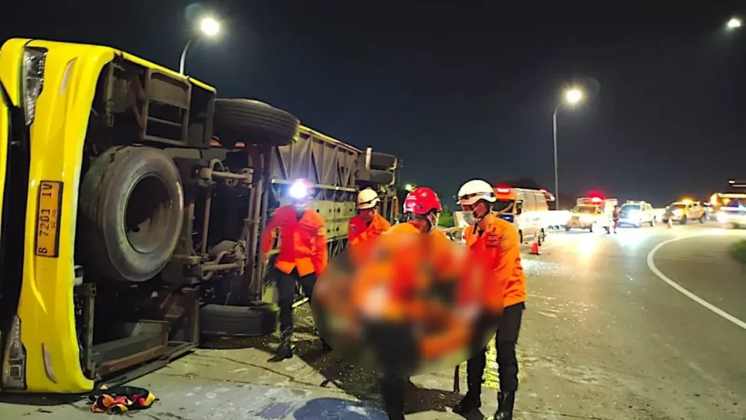 স্থানীয় কর্মকর্তাদের মতে, ৩৪ জন যাত্রী বহনকারী বাসটি প্রথমে একটি কংক্রিট ব্যারিয়ারে ধাক্কা দেয় এবং পরে উল্টে যায়। বাসটি রাজধানী জাকার্তা থেকে ঐতিহাসিক শহর যোগ্যাকার্তার দিকে যাচ্ছিল। জাতীয় অনুসন্ধান ও উদ্ধার সংস্থার প্রধান বুদিওনো জানান, দুর্ঘটনার তীব্র ধাক্কায় অনেক যাত্রী বাসের ভিতরে চাপা পড়ে এবং কেউ কেউ ছিটকে পড়েন।